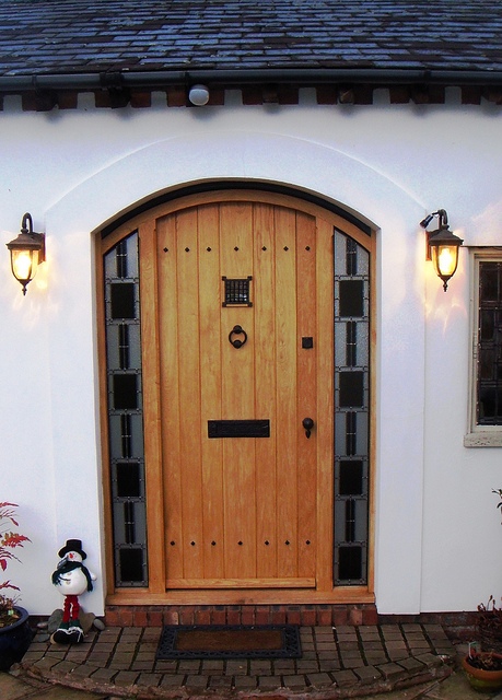 Before deciding on hardware and decorative accents, take all the elements of your home’s exterior into consideration. For example, if you have brass carriage lights on either side of the entrance, ensure that the door handle and letter slot of your new door match the light fixtures.